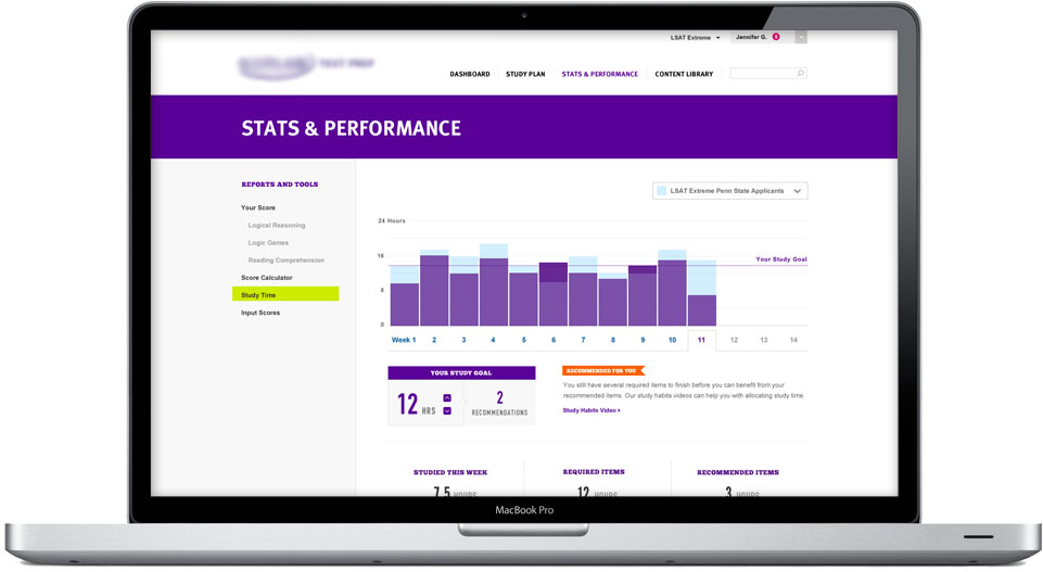A leading test prep company asked us to re-think and re-organize their online tools for students taking the LSAT. Our design extends their tried-and-true combination of lectures, tutorials, and exercises with a dashboard interface that helps students view their progress, extend their skills, and stay on track.